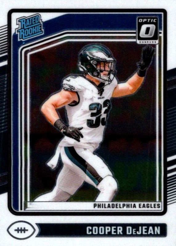 The Cooper DeJean 2024 Optic #221 Base Rookie card in Raw condition has moved up $0.39 (+39.0%) in the last 30 days and was last sold for $1.39 .