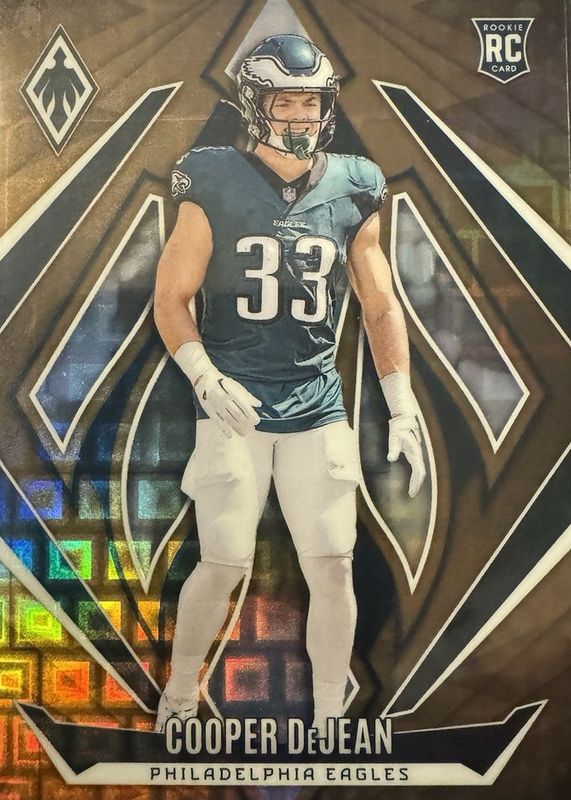 This card is 1 of 60 Cooper DeJean's card variations in the 2024 Phoenix set being tracked by Sports Card Investor, including Base, Hyper, Ice, International, and Lazer.