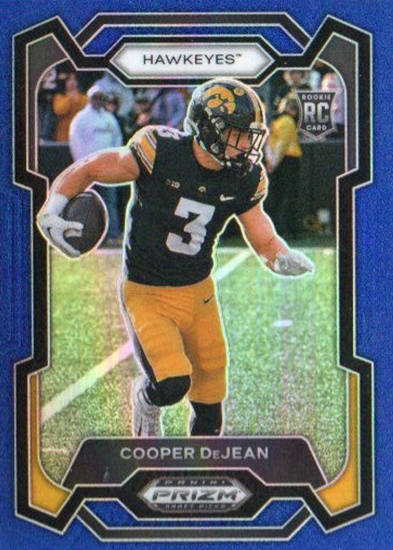 The Cooper DeJean 2024 Prizm Draft Picks #113 Blue /199 Rookie card in Raw condition has not changed in price in the last 30 days and was last sold for $8.00 .