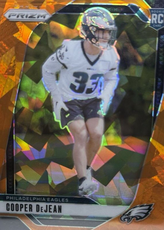The Cooper DeJean 2024 Prizm #321 Orange Ice Rookie card in Raw condition has moved down -$1.51 (-27.5%) in the last 30 days and was last sold for $3.99 .