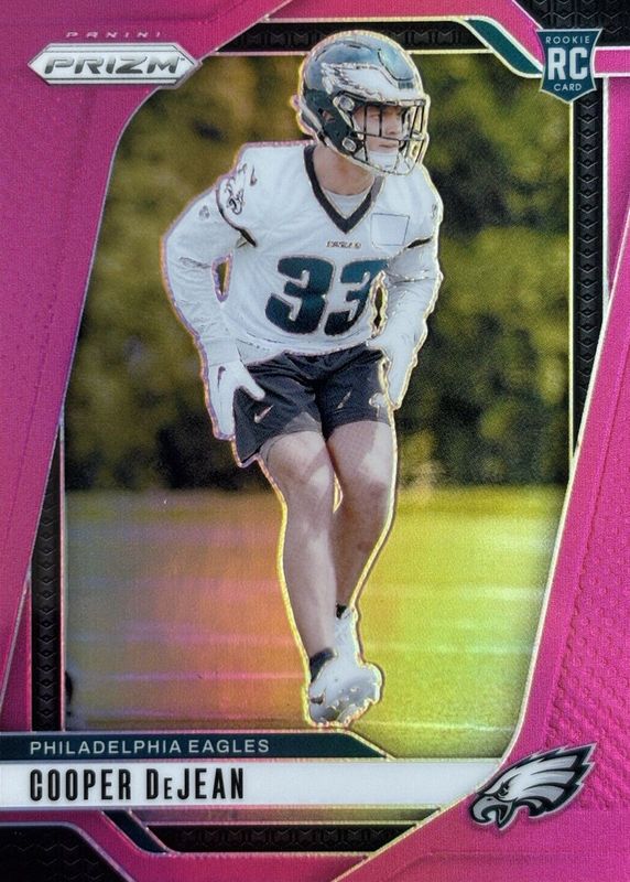 The Cooper DeJean 2024 Prizm #321 Pink Rookie card in Raw condition has moved up $0.51 (+51.5%) in the last 30 days and was last sold for $1.50 .