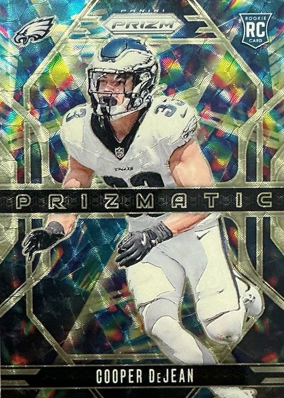 The Cooper DeJean 2024 Prizm #6 Prizmatic - Gold Vinyl /5 Rookie card in Raw condition has not changed in price in the last 30 days and was last sold for $315.00 .