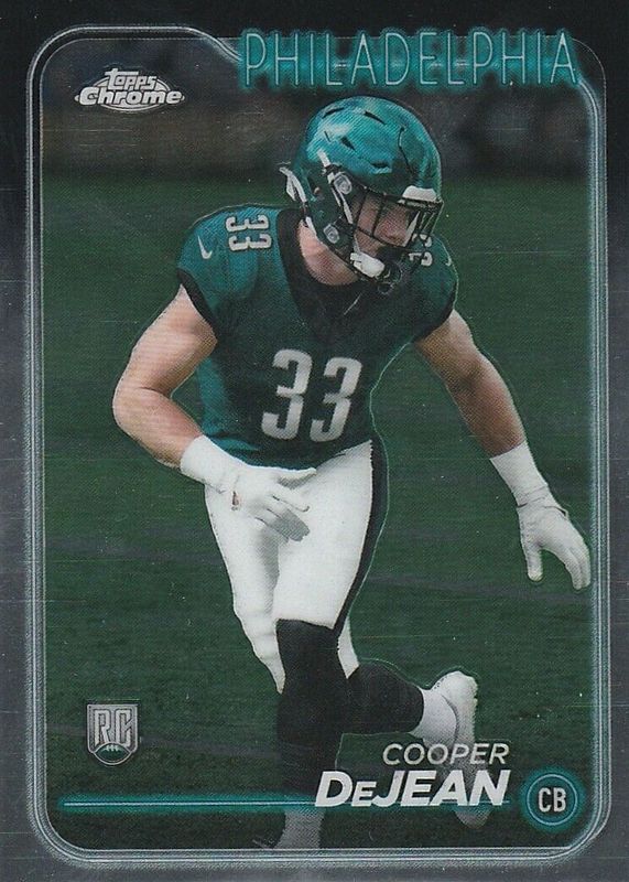 The Cooper DeJean 2024 Topps Chrome #232 Base Rookie card in Raw condition has moved up $0.32 (+24.5%) in the last 30 days and was last sold for $1.65 .