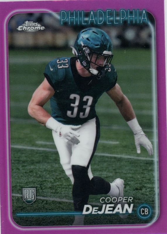The Cooper DeJean 2024 Topps Chrome #232 Pink Refractor Rookie card in Raw condition has moved down -$0.75 (-27.3%) in the last 30 days and was last sold for $2.00 .