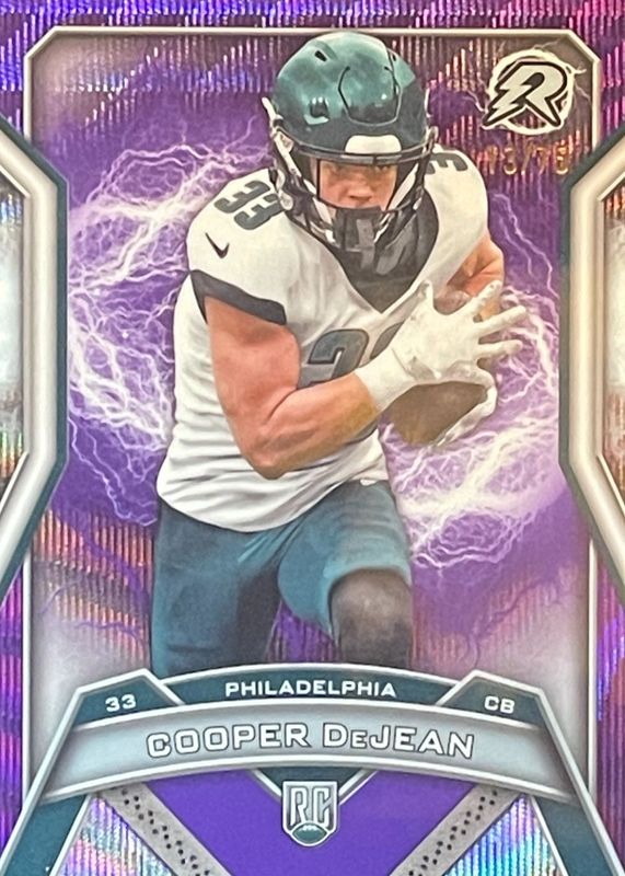 Best Prices Available For Sale of Cooper DeJean 2024 Topps Resurgence #179 Purple Surge Refractor /75