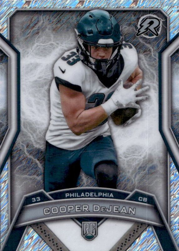 The Cooper DeJean 2024 Topps Resurgence #179 Silver Static Refractor Rookie card in Raw condition has not changed in price in the last 30 days and was last sold for $2.50 .