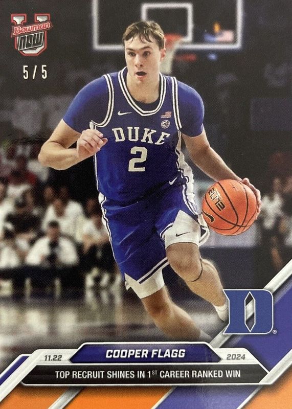 Cooper Flagg 2024 Bowman U Now #16 Orange /5 RAW Price Guide