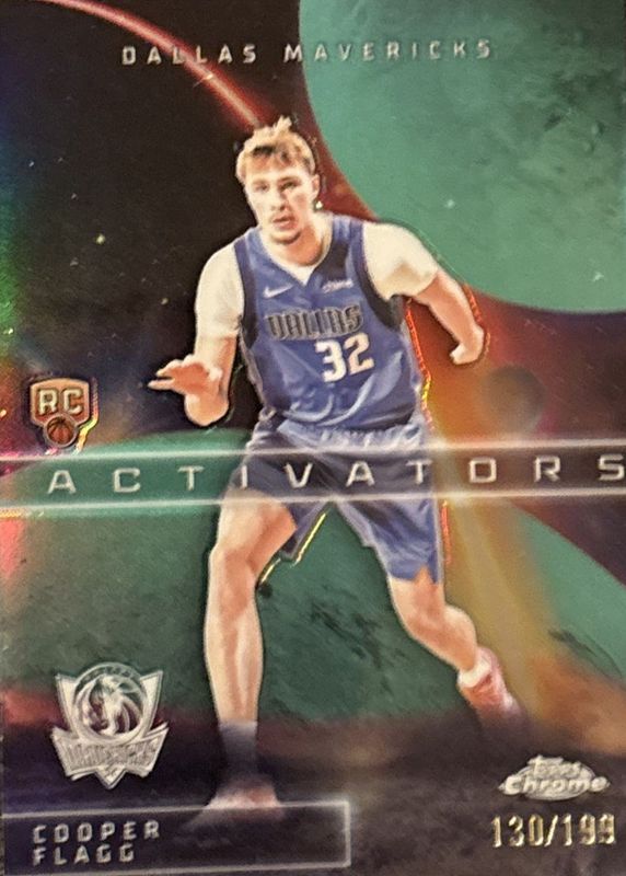 The Cooper Flagg 2025 Topps Chrome #AC-11 Activators - Aqua Refractor /199 Rookie card in Raw condition has not changed in price in the last 30 days and was last sold for $116.25 .