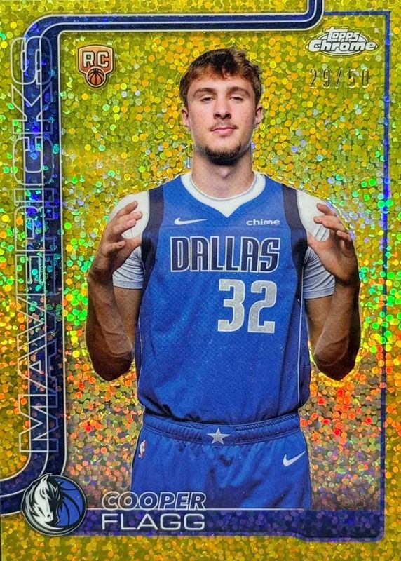 The Cooper Flagg 2025 Topps Chrome #251 Image Variation - Gold Speckle Refractor /50 Rookie card in Raw condition has not changed in price in the last 30 days and was last sold for $6,449.00 .