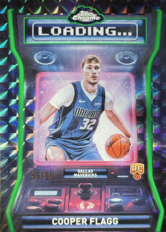 The Cooper Flagg 2025 Topps Chrome #LD-11 Loading - Green Geometric Refractor /99 Rookie card in Raw condition has moved down -$27.00 (-11.7%) in the last 30 days and was last sold for $203.50 .