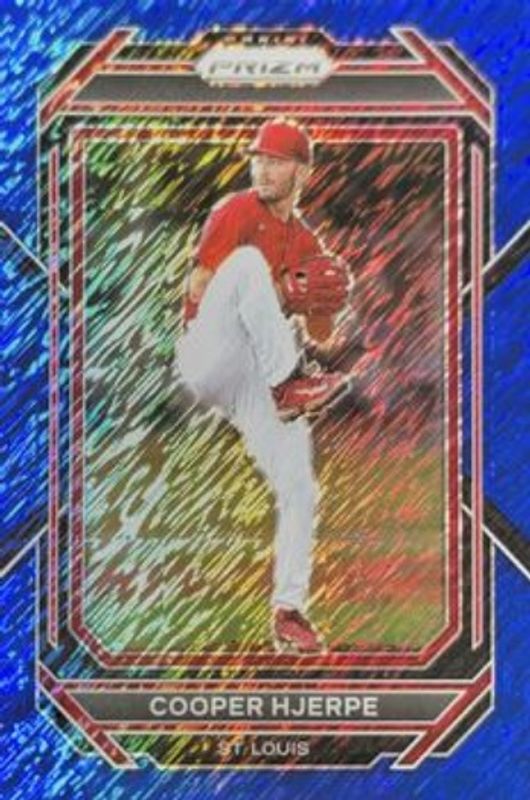 The Cooper Hjerpe 2023 Prizm #134 Blue Shimmer /7 card is 1 of 26 Cooper Hjerpe's card variations in the 2023 Prizm set being tracked by Sports Card Investor, including Base, Blue Ice, Giraffe, Green Ice, and Hyper.