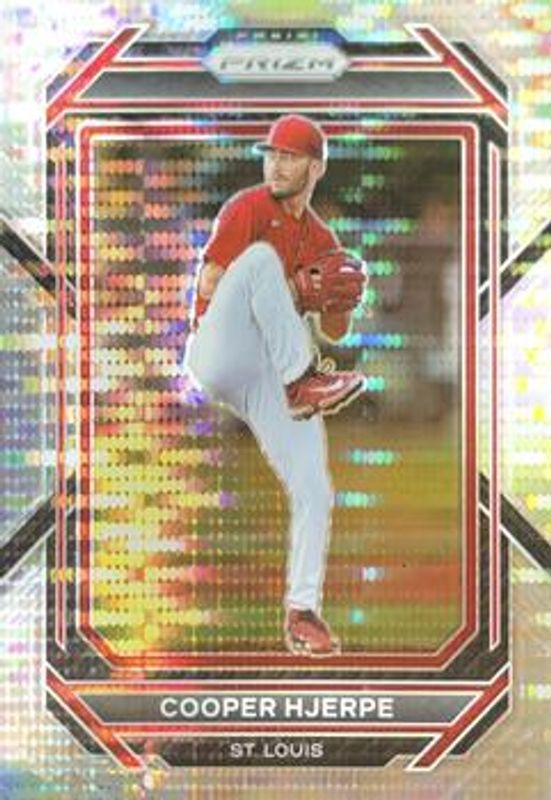 The Cooper Hjerpe 2023 Prizm #134 Pulsar card is 1 of 26 Cooper Hjerpe's card variations in the 2023 Prizm set being tracked by Sports Card Investor, including Base, Blue Ice, Giraffe, Green Ice, and Hyper.
