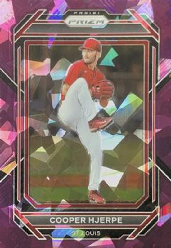 The Cooper Hjerpe 2023 Prizm #134 Purple Ice card is 1 of 26 Cooper Hjerpe's card variations in the 2023 Prizm set being tracked by Sports Card Investor, including Base, Blue Ice, Giraffe, Green Ice, and Hyper.