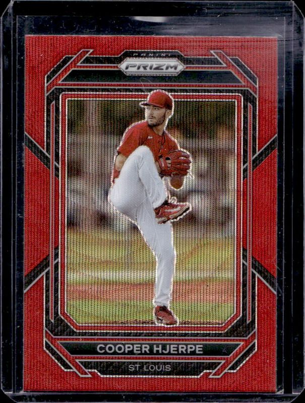 The Cooper Hjerpe 2023 Prizm #134 Ruby Wave card is 1 of 26 Cooper Hjerpe's card variations in the 2023 Prizm set being tracked by Sports Card Investor, including Base, Blue Ice, Giraffe, Green Ice, and Hyper.