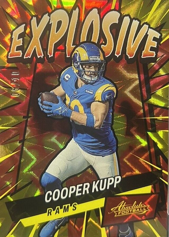 The Cooper Kupp 2022 Absolute #E25 Explosive - Gold /10 card in Raw condition has not changed in price in the last 30 days and was last sold for $167.50 .