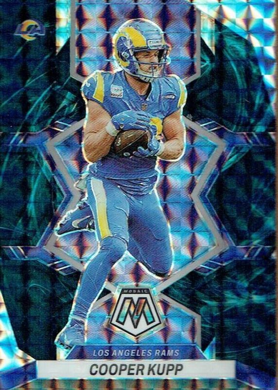 The Cooper Kupp 2022 Mosaic #110 Genesis /(SSP) card in Raw condition has not changed in price in the last 30 days and was last sold for $24.50 .