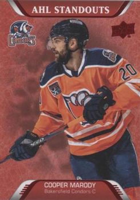 The Cooper Marody 2020 Upper Deck AHL #219 Red card is 1 of 13 Cooper Marody's card variations in the 2020 Upper Deck AHL set being tracked by Sports Card Investor, including #1 Base, #219 Base, #1 UD Exclusives /100, #219 Gold /25, and #1 UD High Gloss /10.