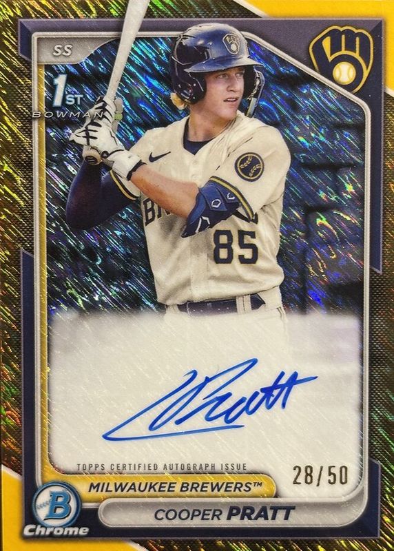 2024 Bowman Cooper Pratt 1st Chrome #BCP-137 Gold Shimmer Auto /50 Brewers