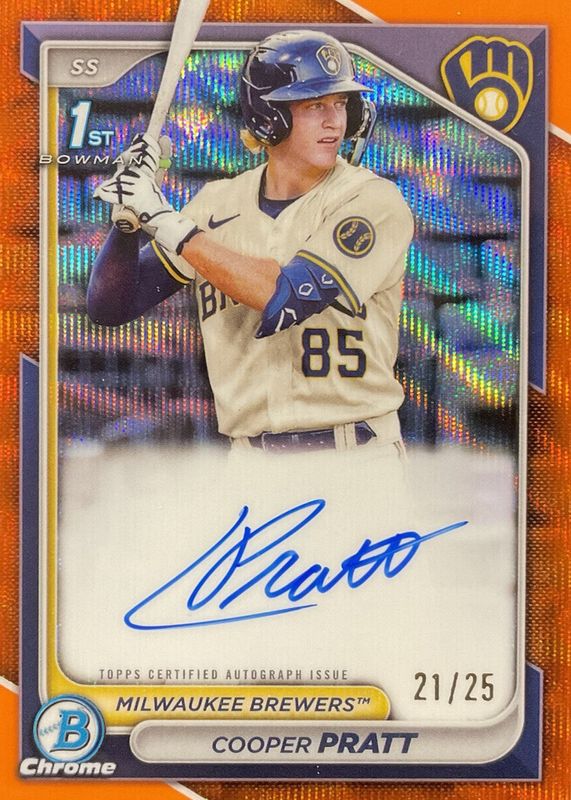 2024 Bowman Chrome Cooper Pratt 1st Orange Wave Refractor Auto #5/25 Brewers