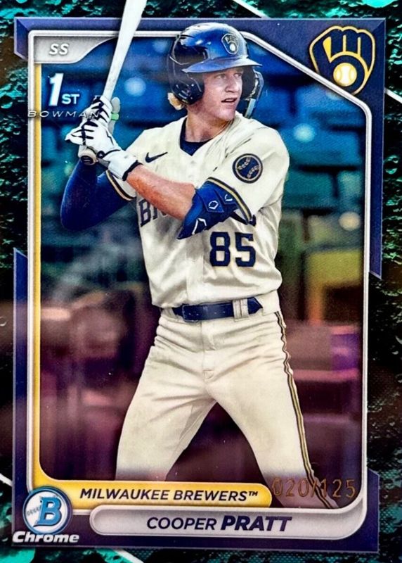 2024 Bowman Cooper Pratt Chrome Aqua Lunar Refractor 1st #/125 Brewers
