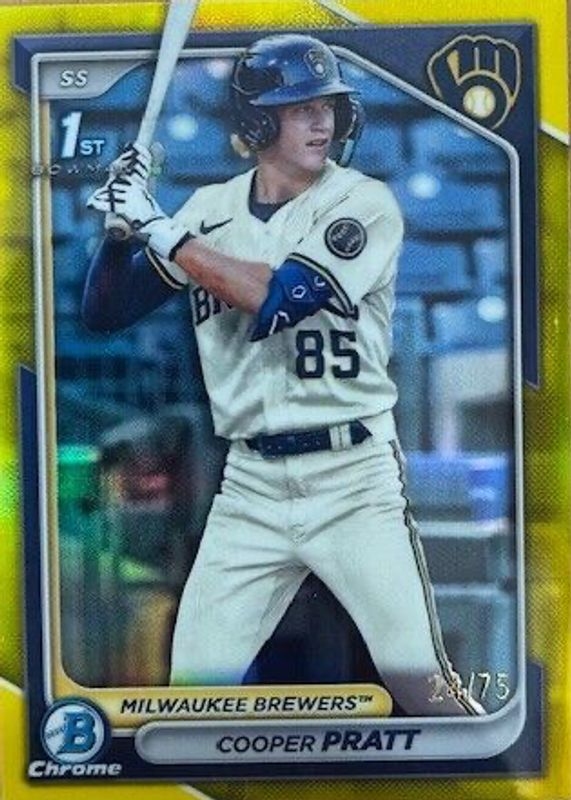 2024 Bowman 1st Cooper Pratt Yellow Chrome Refractor /75 #BP-137 Brewers