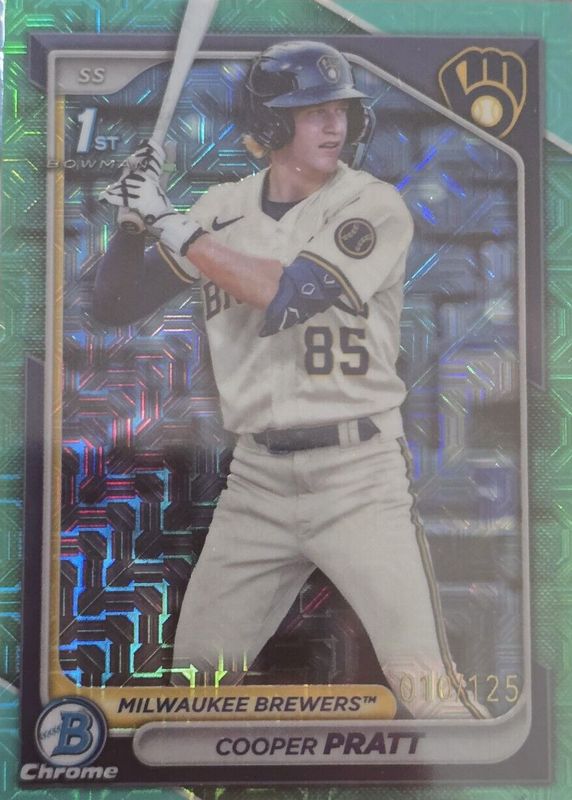 2024 Bowman Chrome 1st Cooper Pratt Aqua Mojo Refractor /125 BCP-137 RC Brewers