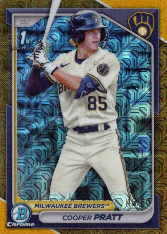 2024 Bowman Chrome 1st Cooper Pratt Brewers Gold Mojo Refractor /50 !