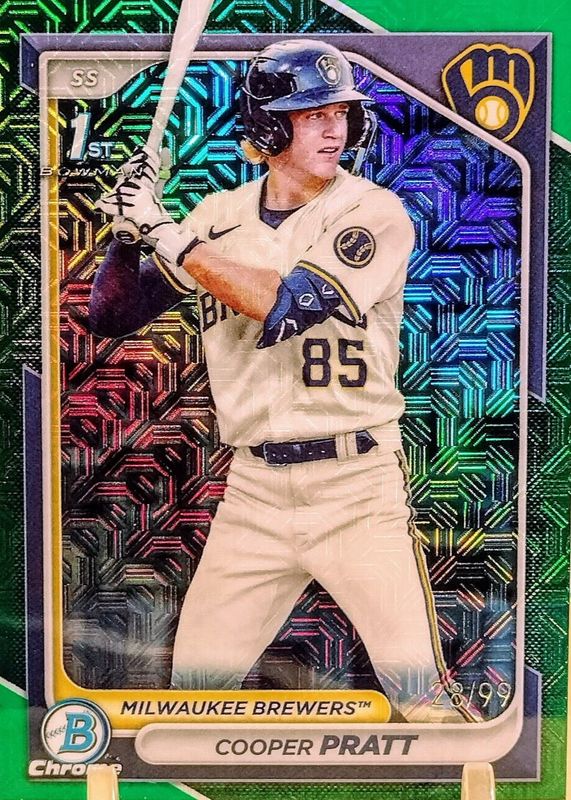 Cooper Pratt 2024 Bowman Chrome Green Mojo Refractor RC /99 #BCP-137 Brewers