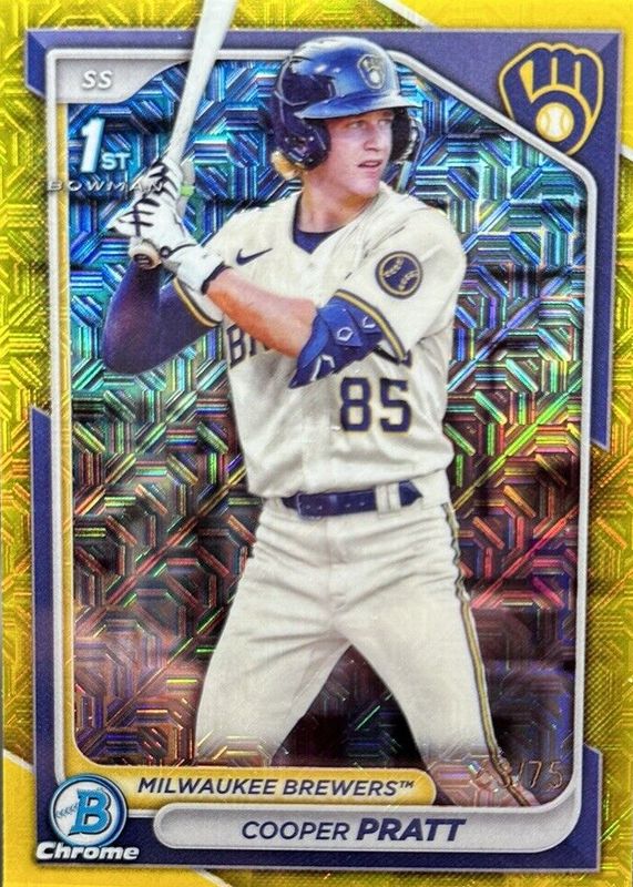 Cooper Pratt 2024 Bowman Chrome 1st Mega Box Yellow Refractor /75 RC Brewers ⚾️