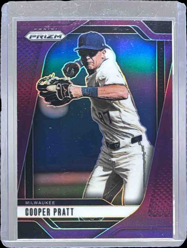 The Cooper Pratt 2025 Prizm #6 Purple /149 card is 1 of 33 Cooper Pratt's card variations in the 2025 Prizm set being tracked by Sports Card Investor, including Base, Blue Ice, Glitter, Green, and Green Ice.