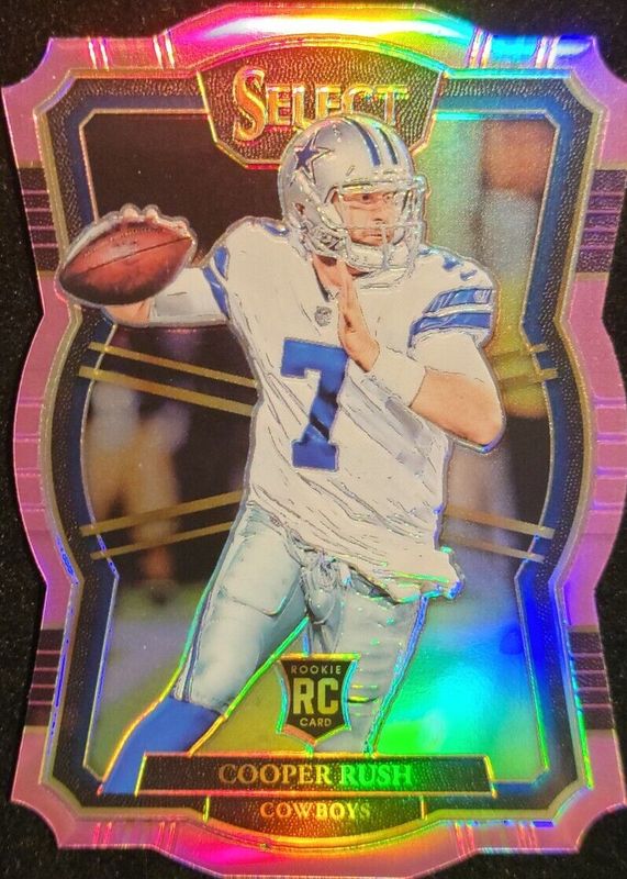 The Cooper Rush 2017 Select #152 Premier Level Pink Die-Cut /4 Rookie card in Raw condition has not changed in price in the last 30 days and was last sold for $20.49 .