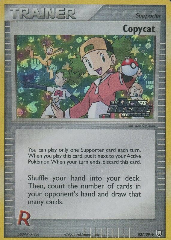 The Copycat 2004 EX: Team Rocket Returns #083/109 Reverse Holo card in Raw TCG (Near Mint) condition has moved up $20.00 (+100%) in the last 30 days and was last sold for $39.99 .