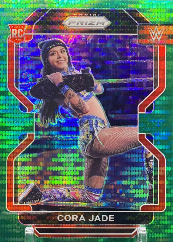 This card is 1 of 20 Cora Jade's card variations in the 2022 Prizm WWE set being tracked by Sports Card Investor, including Green, Hyper, Ice, Red White Blue, and Ruby Wave.