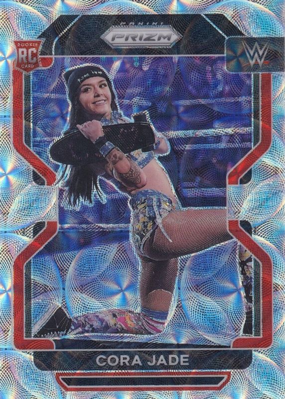 This card is 1 of 20 Cora Jade's card variations in the 2022 Prizm WWE set being tracked by Sports Card Investor, including Green, Hyper, Ice, Red White Blue, and Ruby Wave.