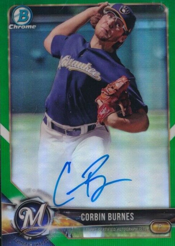 Corbin Burnes 2018 Bowman #CPA-CB Chrome Prospect Auto - Green Refractor /99 RAW Price Guide