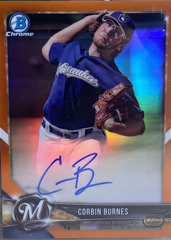 Corbin Burnes 2018 Bowman #CPA-CB Chrome Prospect Auto - Orange Refractor /25 RAW Price Guide