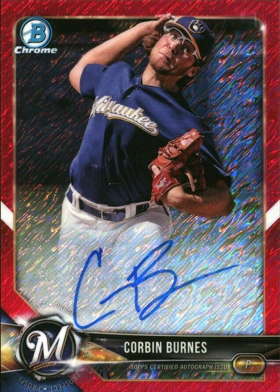 Corbin Burnes 2018 Bowman #CPA-CB Chrome Prospect Auto - Red Shimmer Refractor /5 RAW Price Guide