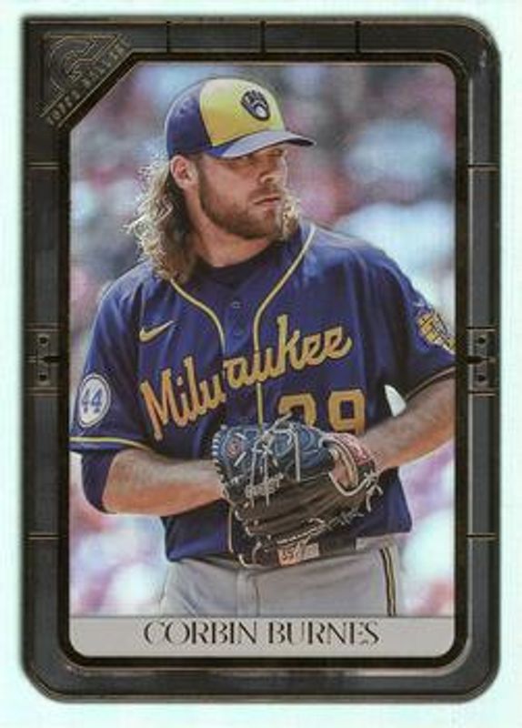 The Corbin Burnes 2021 Topps Gallery #121 Rainbow Foil card is 1 of 21 Corbin Burnes' card variations in the 2021 Topps Gallery set being tracked by Sports Card Investor, including Base, Printer Proof, Private Issue /250, Green /125, and Green Pattern /99.