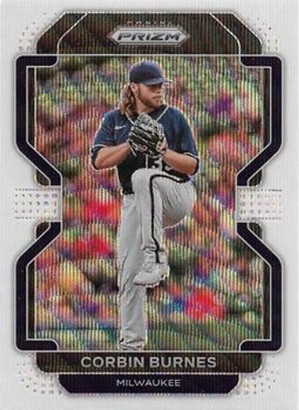 The Corbin Burnes 2022 Prizm #208 White Wave card is 1 of 80 Corbin Burnes' card variations in the 2022 Prizm set being tracked by Sports Card Investor, including Base, Blue, Blue Velocity, Carolina Blue, and Cosmic Haze.