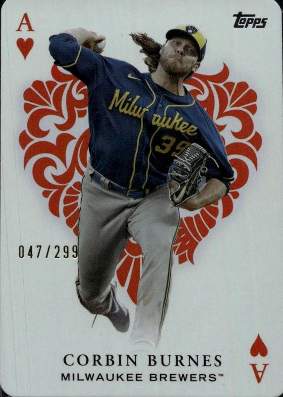 The Corbin Burnes 2023 Topps #AA-10 All Aces - Black /299 card in Raw condition has not changed in price in the last 30 days and was last sold for $9.01 .