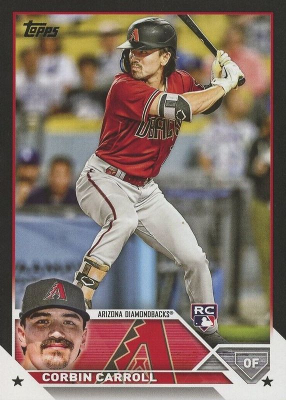 This card is 1 of 21 Corbin Carroll's card variations in the 2023 Topps set being tracked by Sports Card Investor, including Base, Gold Foil, Rainbow Foil, Royal Blue, and Gold /2023.