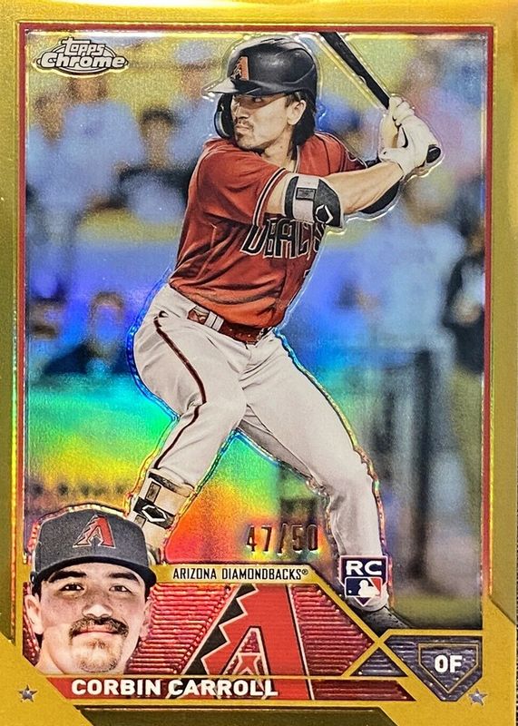 Recent Sales of Corbin Carroll 2023 Topps Chrome #95 Gold Refractor /50 Rookie Raw