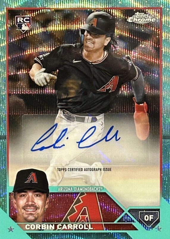 Auctions Ending Soon for Corbin Carroll 2023 Topps Chrome Update #AC-CCA Autographs - Aqua Wave Refractor /199 Rookie RAW