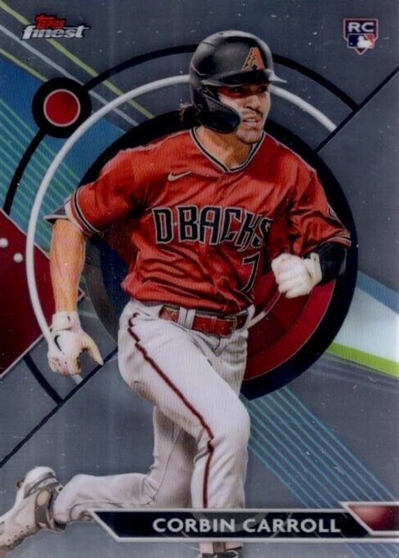 The Corbin Carroll 2023 Topps Finest #24 Base Rookie card in Raw condition has moved down -$1.27 (-56.2%) in the last 30 days and was last sold for $0.99 .