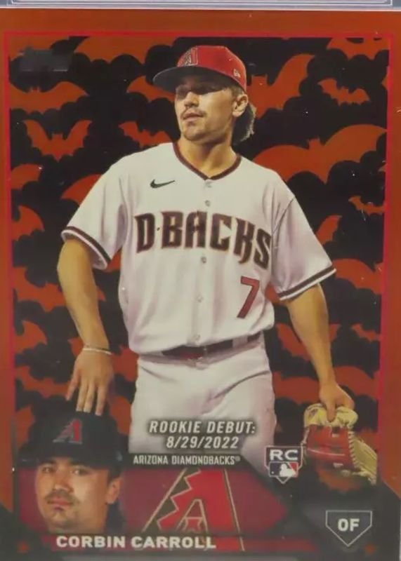 This card is 1 of 38 Corbin Carroll's card variations in the 2023 Topps Update set being tracked by Sports Card Investor, including Rookie Debut, Rookie Debut - Ghost Foil, Rookie Debut - Gold Foil, Rookie Debut - Jack O' Lantern Foil, and Rookie Debut - Orange & Black Foil.