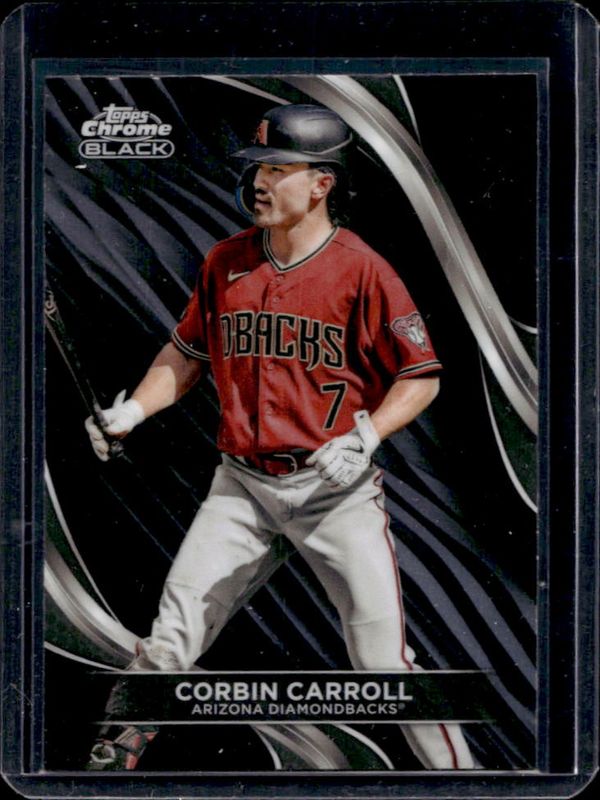 The Corbin Carroll 2024 Topps Chrome Black #51 Base card is 1 of 26 Corbin Carroll's card variations in the 2024 Topps Chrome Black set being tracked by Sports Card Investor, including Refractor /199, Purple Mini-Diamond Refractor /150, Green Refractor /99, Green Wave Refractor /99, and Blue Lava Refractor /75.