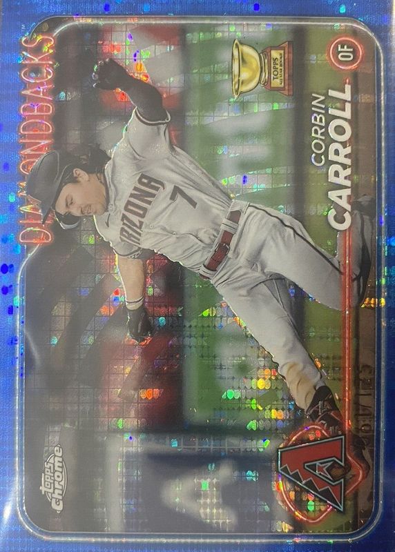 This card is 1 of 47 Corbin Carroll's card variations in the 2024 Topps Chrome set being tracked by Sports Card Investor, including Base, Pink Refractor, X Fractor, Magenta Speckle Refractor /350, and Purple Speckle Refractor /299.