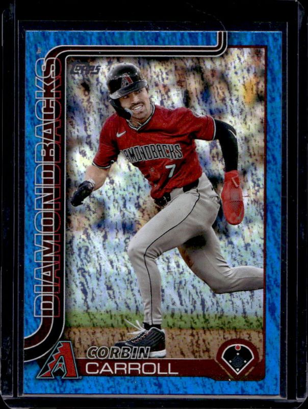 The Corbin Carroll 2025 Topps #78 Blue Holo Foil /150 card is 1 of 262 Corbin Carroll's card variations in the 2025 Topps set being tracked by Sports Card Investor, including Base, Aqua Holo Foil, Diamante Foil, Holo Foil, and Pink Diamante Foil.