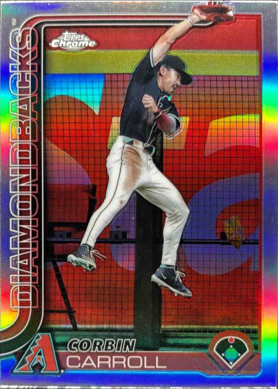 The Corbin Carroll 2025 Topps Chrome #268 Base Image Variation card is 1 of 90 Corbin Carroll's card variations in the 2025 Topps Chrome set being tracked by Sports Card Investor, including Base, Geometric Refractor, Image Variation, Lightboard Logo Variation, and Negative Refractor.