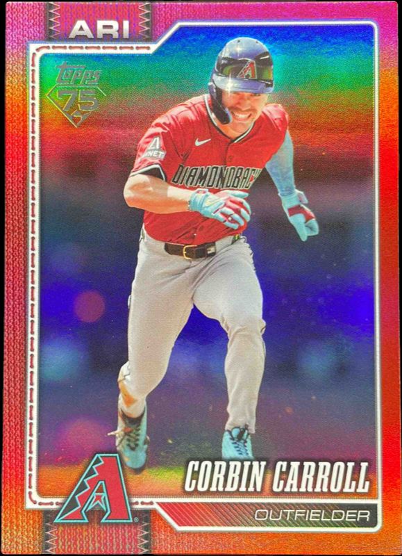 The Corbin Carroll 2026 Topps #314 Red Rainbow Foil /5 card is 1 of 191 Corbin Carroll's card variations in the 2026 Topps set being tracked by Sports Card Investor, including Base, Aqua Holo Foil, Aqua Rainbow Foil, Diamante Foil, and Holiday.